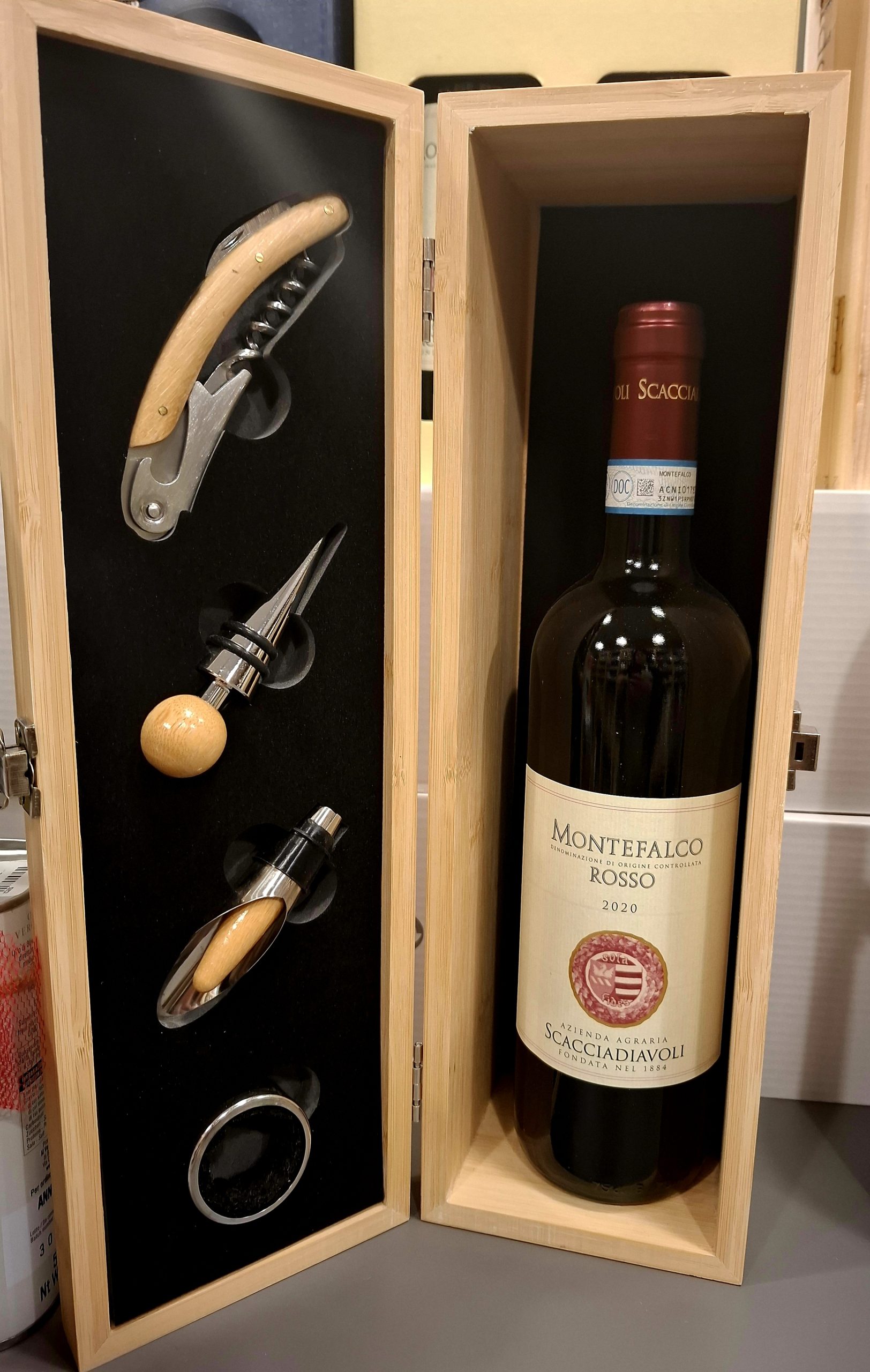 Cassetta Legno Montefalco Rosso con utensili vari